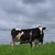 Description: Many cows in barn look up at camera