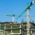 Description: 4K aerial view on building construction with beautiful Austin city view. Construction of prestige skyscraper from blue glass and concrete. Construction business in Austin, capital city of Texas USA 4K
