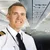 Description: Two pilots in the cockpit of a passenger airplane or aircraft prepare for taxiing on the runway before flight