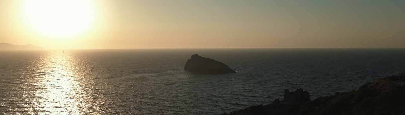 Dark Sea Clean Sky Dusk Revealing Shot