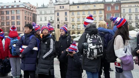 Real life in the old European city of Krakow, Poland